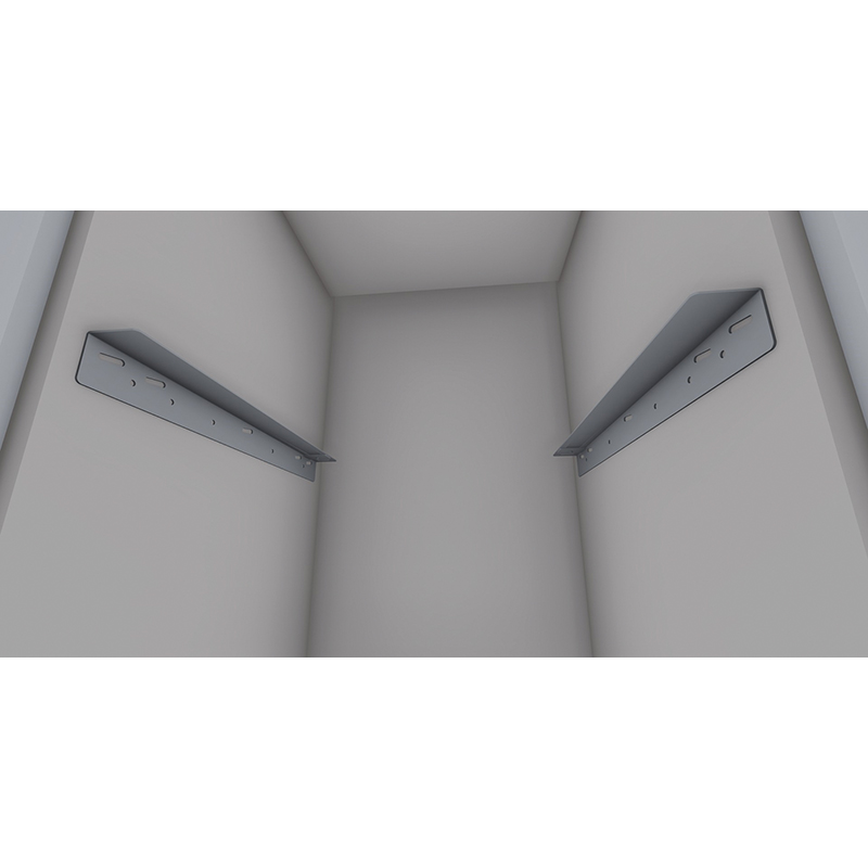 Edelstahl, Auflagewinkel zur Montage von mehreren Küchengeräten übereinander, Montage nach unten, +/- 2 mm Höhenverstellbar und +/- 2,5 mm neigbar um Toleranzen der Küchengeräte auszugleichen
