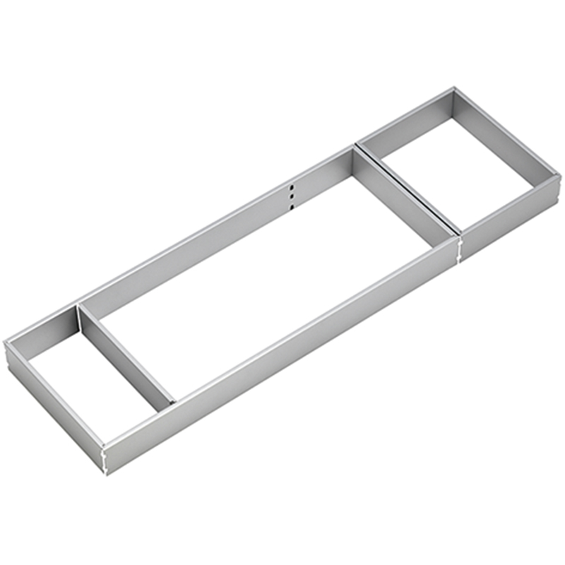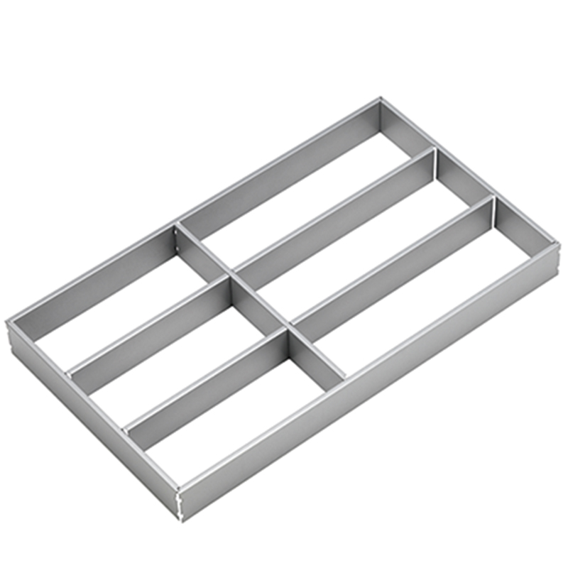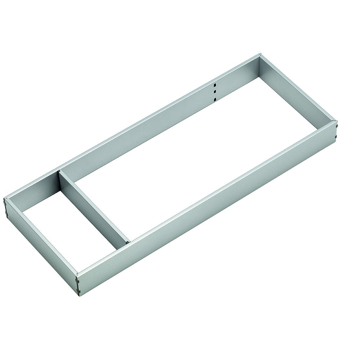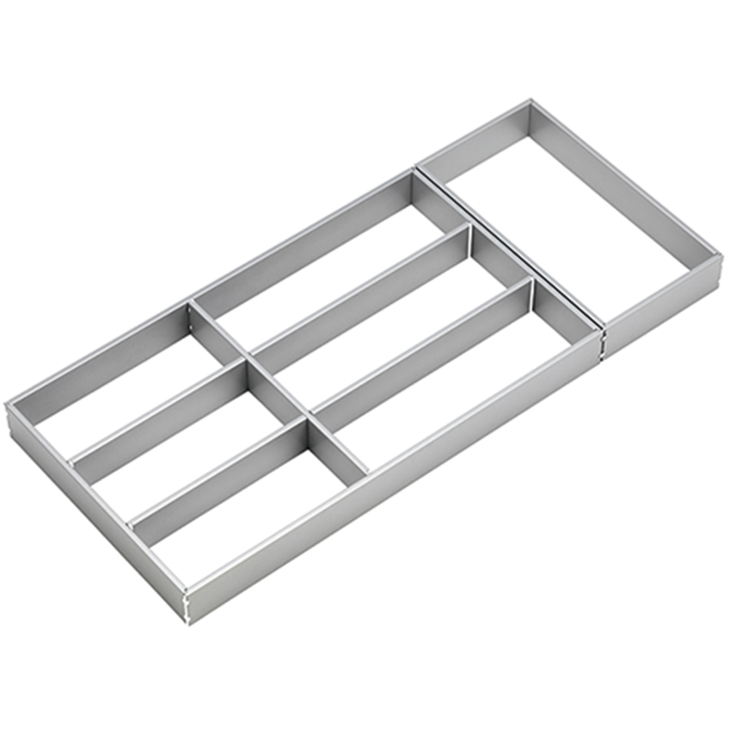 acier, un cadre parfait pour l'organisation des tiroirs, qu'il s'agisse d'un, de deux ou de trois éléments, avec le système de cadre Tavinea Sorto, l'organisation de tiroirs de toute largeur devient rapide et simple, les éléments de cadre sont formés de profils métalliques de 6 mm dont la forme fait un point de mire fonctionnel, design épuré, surfaces mates, couleurs intemporelles, l'élégance sobre du système de cadres confère aux meubles de cuisine, de salle de bain, du séjour comme à ceux de la chambre à coucher une apparence toujour aussi soignée, le connecteur d'angl e est à la fois un élément espaceur et antidéparant, le matériau, la forme, la couleur et la surface sont identiques et idéal de tous les systèmes de tiroirs de Grass, un mécanisme à ressort à l'intérieur de la traverse permet un positionnement libre du séparateur longitudinal fin, c'est ainsi que l'on peut créer avec une seule traverse deux compartiments supplémentaires ou de maintenir à leur place des accessoires tels qu'un bloc à couteaux, un support de rouleau de film ou un escalier à épices, sans traverse