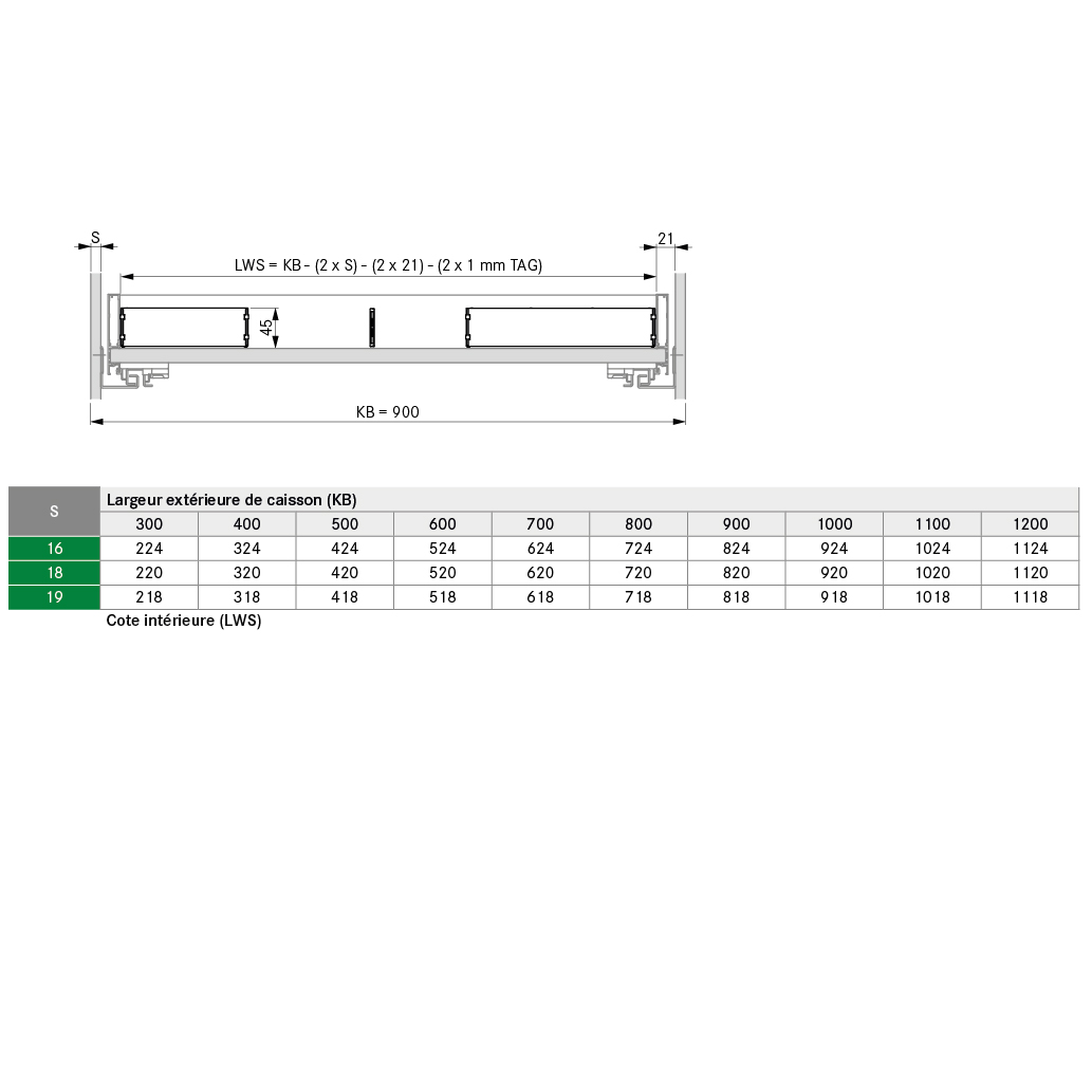 Châssis GRASS® Vionaro hauteur 89 mm, pour panneau d'arrière en bois