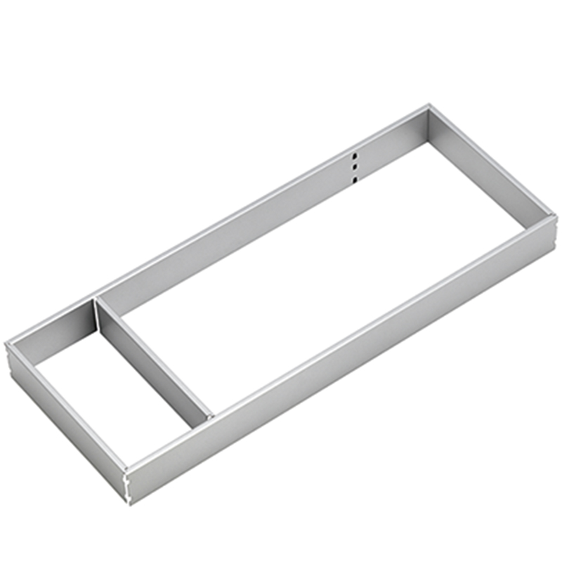 Hohlkammerzargensystem beschichtet weiss, silber oder anthrazit, vorgerichtet für Korpusschienen Nova Pro, integrierte Höhen- und Seitenverstellung, geringe Einbaubreite und gerade Innenseite für mehr Stauraum, mit Wischlippe für optimale Hygiene, werkzeuglose Montage und Demontage der Front, keine Bodenbearbeitung notwendig, individualisierbar durch Designleisten, ohne Einhängehaken