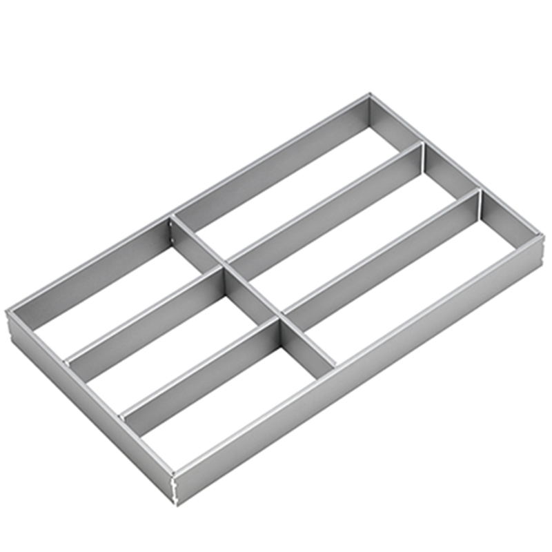 Stahl, perfekte Rahmenbedingungen für die Organisation von Schubkästen, ob ein, zwei oder drei Elemente, mit dem Tavinea Sorto Frame-System lassen sich Schubkästen jeder Breite schnell und einfach organisieren, die Rahmenelemente sind aus schmalen Metallprofilen zusammengesetzt, deren Form zum funktionalen Blickfang werden lässt, puristisch reduziertes Design, matte Oberflächen, zeitlose Farben, die schlichte Eleganz lässt Schubkästen in Küche, Bad, Wohn- und Schlafbereich gleichermassen gut aussehen, die innovative Eckverbindung ist dabei Abstandhalter und Rutschstopper in einem, Material, Form, Farbe und Oberfläche sind identisch und somit die ideale Ergänzung für alle Grass Schubkasten-Systeme, eine Federvorrichtung im inneren der Traverse macht es möglich, den schmalen Längsteiler frei zu positionieren, so lassen sich mit einer einzelnen Traverse zwei zusätzliche Fächer schaffen oder Zubehör wie Messerblock, Folienhalter oder Gewürztreppe stabil in ihrer Position halten,