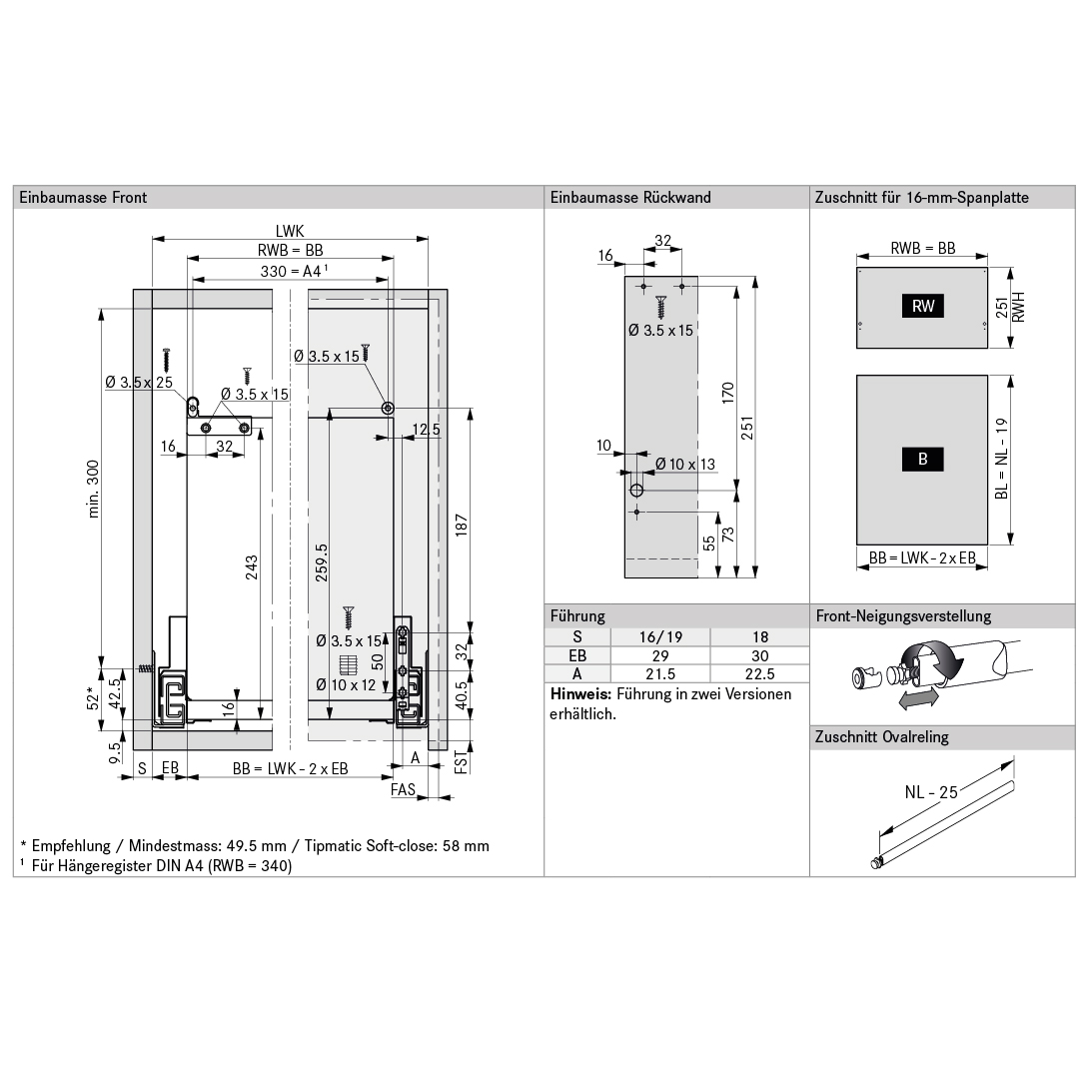 Hängeregisterauszug GRASS® zu Zarge Nova Pro Scala, Zargenhöhe 90 mm