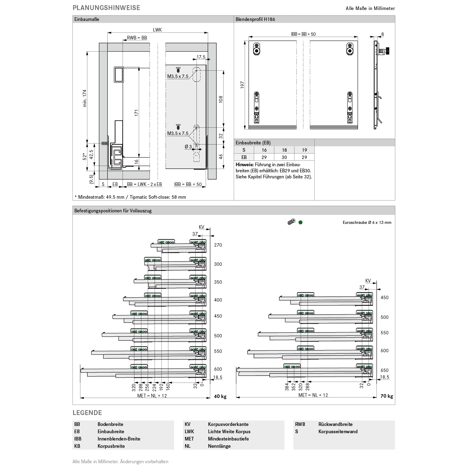 • Ab Schubladenbreite 600 mm wird Front-Bodenverbinder 58.274.41 empfohlen.