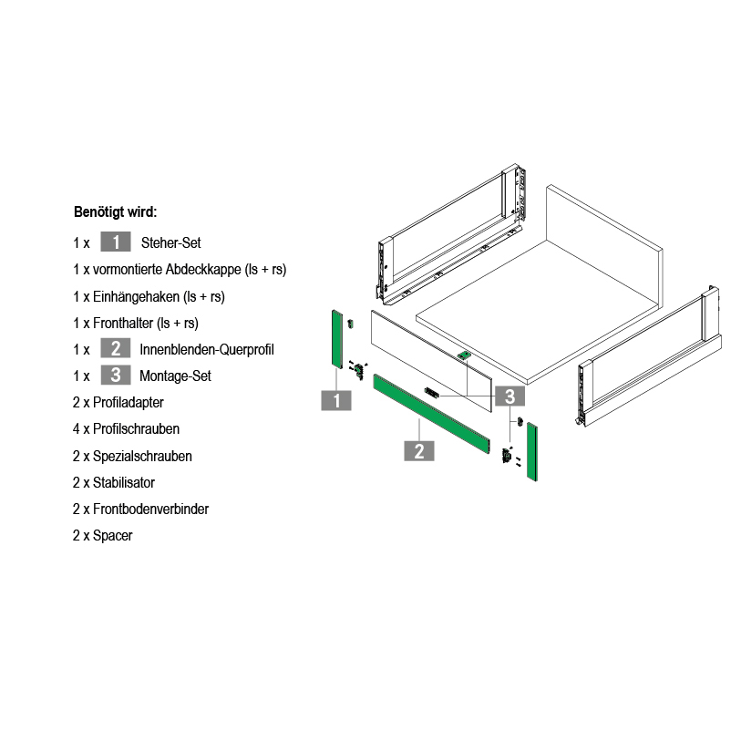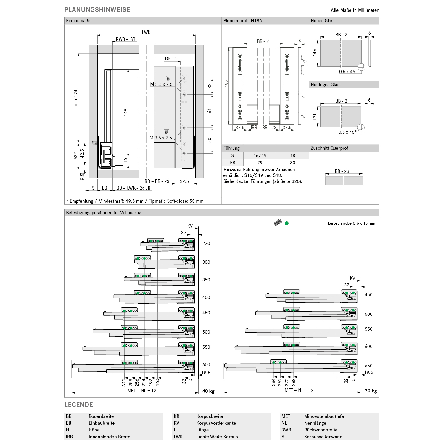 - Ab Schubladenbreite 600 mm wird Front-Bodenverbinder 58.274.41 empfohlen.
