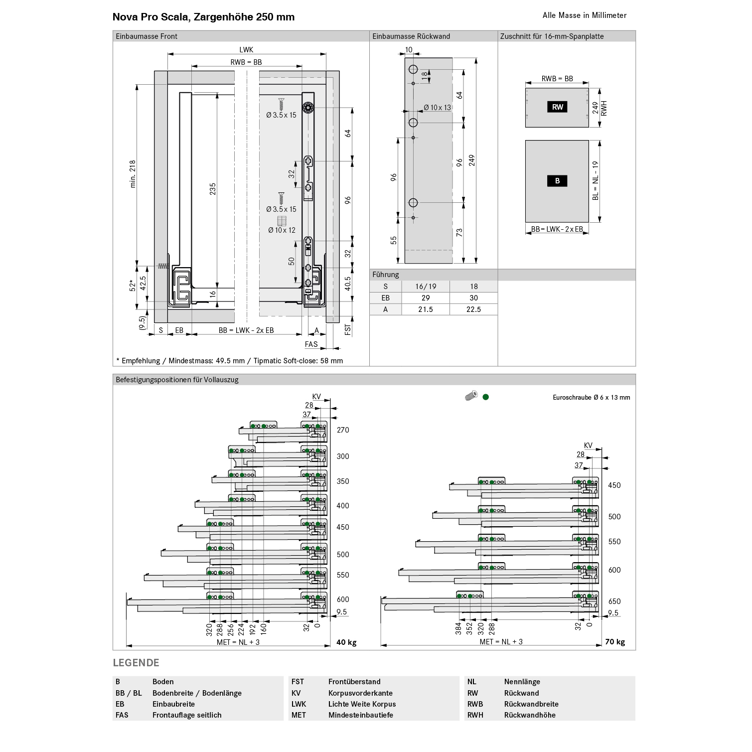 Zarge GRASS® Nova Pro Scala, Zargenhöhe 250 mm