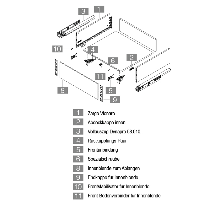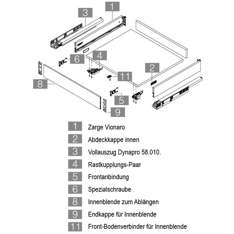 - Zarge für Innenschubladen H121 siehe 58.212.