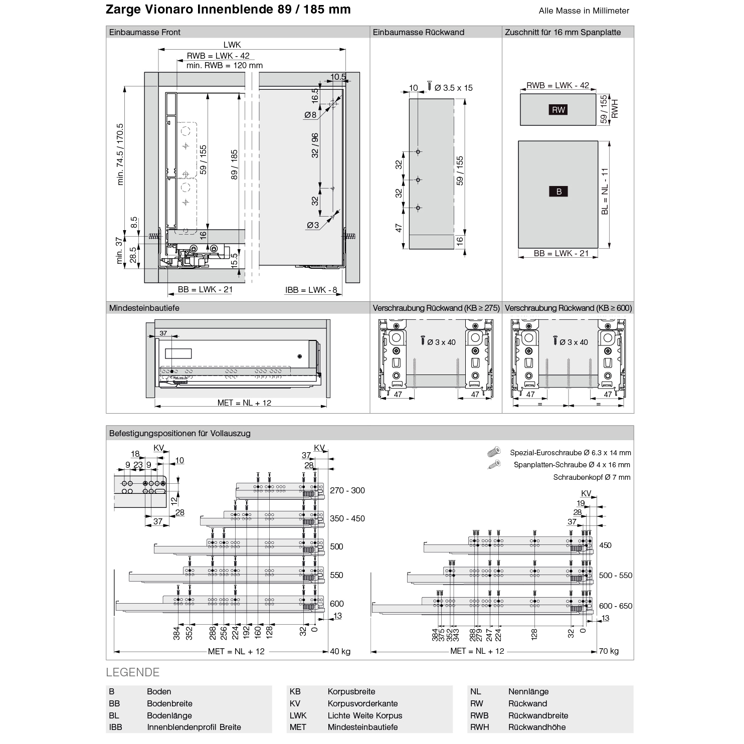Innenblende GRASS® Vionaro H89 / H121 / H185