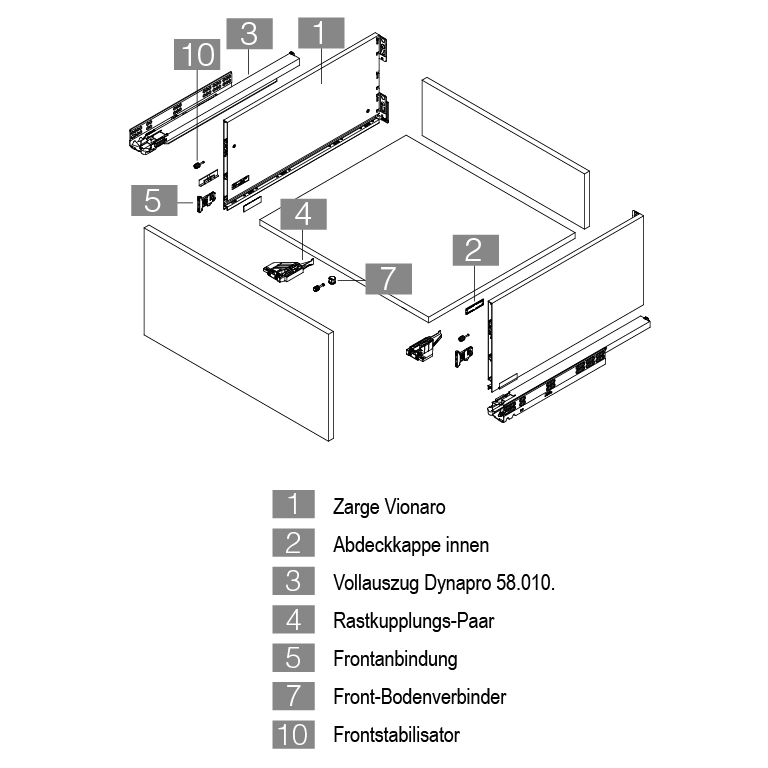 - Schubladenzwinge Grass Nova Pro und Vionaro siehe 99.620.20