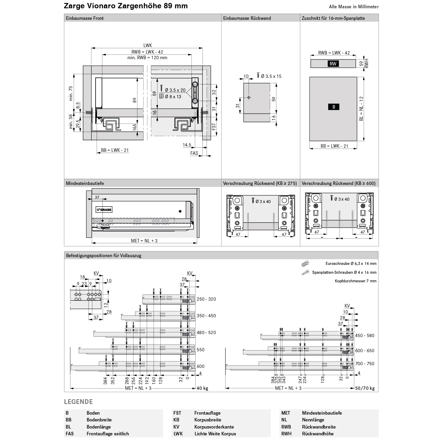 Zarge GRASS® Vionaro Zargenhöhe 89 mm, für Holzrückwand
