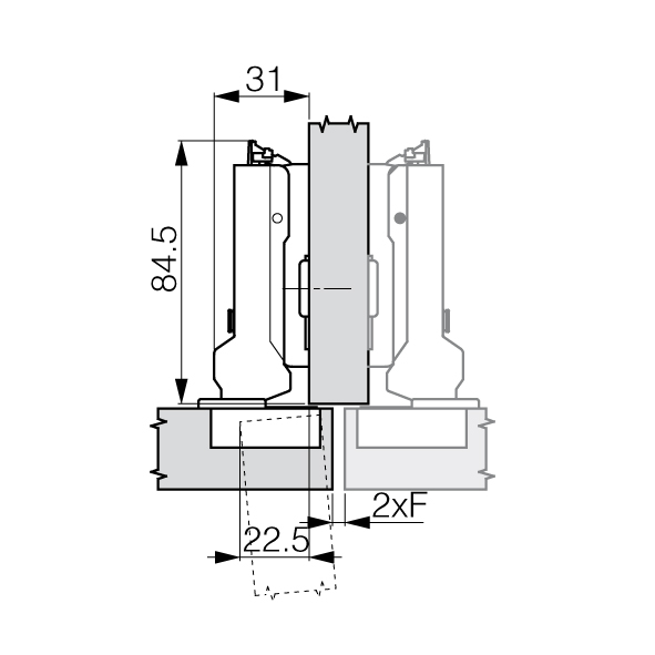 Topfband GRASS® Tiomos 95° Click-on, für dicke Türen max. 36 mm, Bohrbild 45 / 9,5