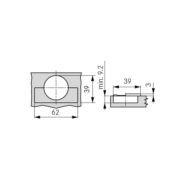 Zink vernickelt, Topf zum Anschrauben, je nach Grundplattenhöhe als Eck-, Mittel- und Innenband einsetzbar, 3-dimensionale Verstellung mit entsprechender Grundplatte, mit negativer Federung im Scharnierarm unterstützt das Öffnen von grifflosen Türen für Türauflage bis 28 mm, geringe Topftiefe von 9 mm, ohne Abdeckkappe für Bandarm, ohne Grundplatte