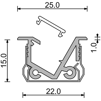 Einbauprofil KMD P1 mit schrägem Lichtaustritt 30°, zu LED Strip's