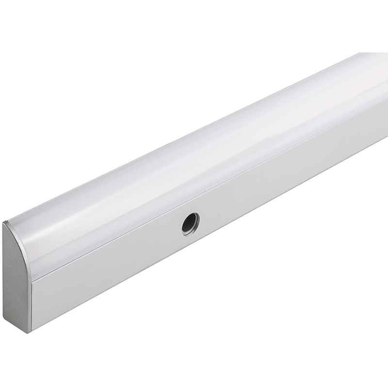 Aluminiumgehäuse mit Abdeckung opal, 230 Volt, Ra 80, 75 Lm/W, zum Aufschrauben, Vorschaltgerät im Sockel eingebaut, mit Wippschalter, Anschlussleitung 100 mm mit Ministecksystem HV, Reiheninstallation mehrerer Leuchten bis max. 200 Watt möglich