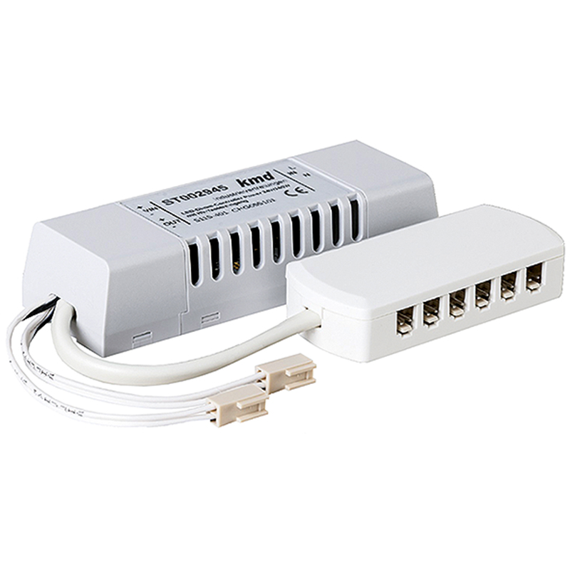 grau, Primärleitungen 2 x 2000 mm zum Anschliessen an Konverter 12 / 24 Volt DC, Sekundäranschluss 1 x LED 12-fach Verteiler, mit Hochvolt-Tastereingang über Klemmen, ohne Konverter
