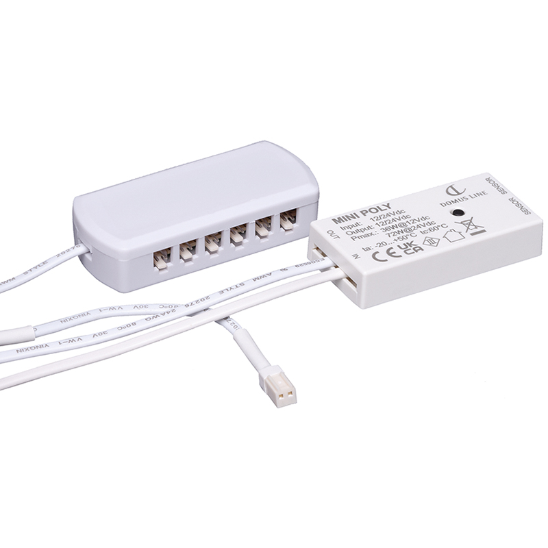 weiss, zu LED 12 / 24V DC Systemen, Zuleitung zu Betriebsgerät 200 mm mit JMT-Ministecker, Zuleitung mit JMT 12-fach Verteiler zu Leuchten 200 mm, zum Anschluss von 1 - 2 Sensoren
