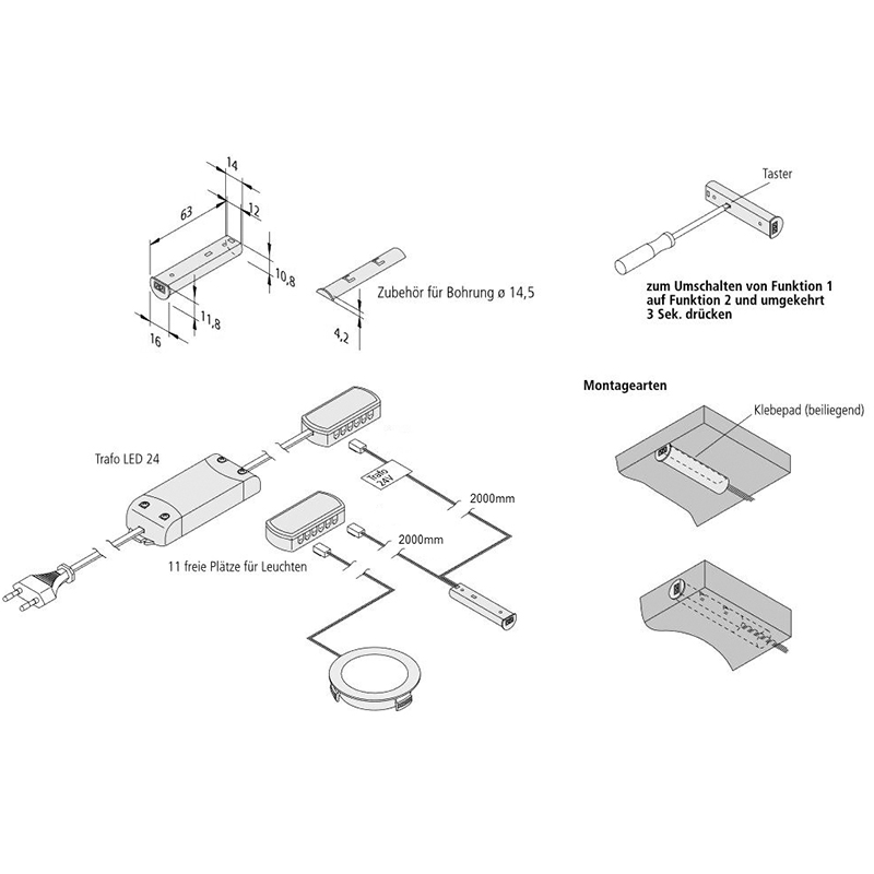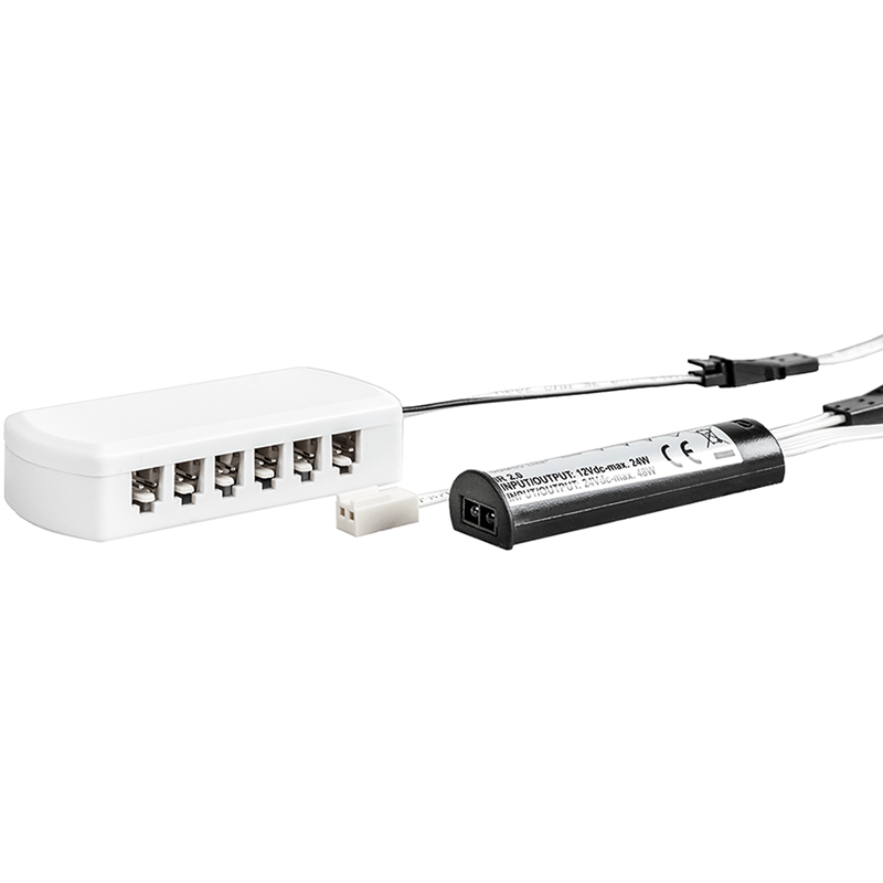 Primärleitung 2000 mm zum Anschliessen an Konverter, Sekundärleitung mit 12-fach Verteiler zu Leuchte 2000 mm