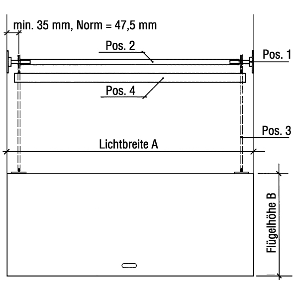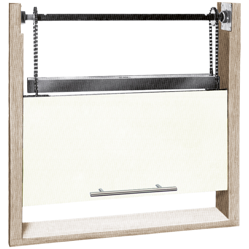 für vertikal verschiebbare Schalter und Durchreichen, solide, leicht laufende Konstruktion mit Kugellager, mit horizontal angeordnetem Gegengewicht