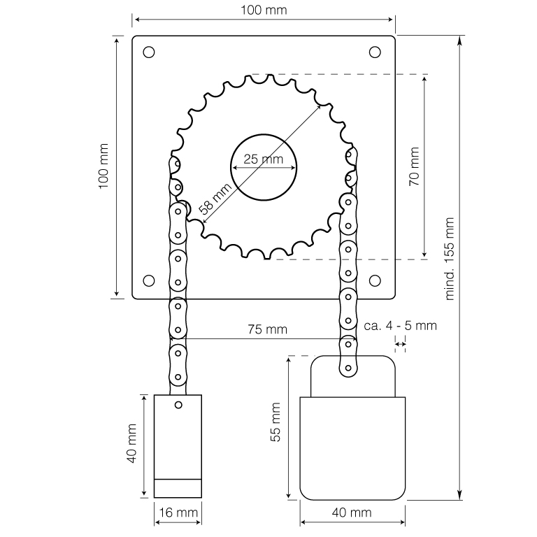 - Pos. 4 = Gegengewichtsträger, U-Profil 40 x 40 mm