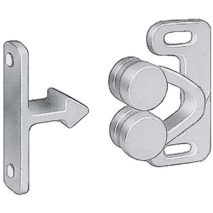 - 2 federnde Rollenbacken bzw. Rollen gewährleisten einen sicheren und geräuschlosen Einlauf der Kunststoff-Schliesshaken. Das Öffnen der Türen erfolgt genauso geräuschlos.