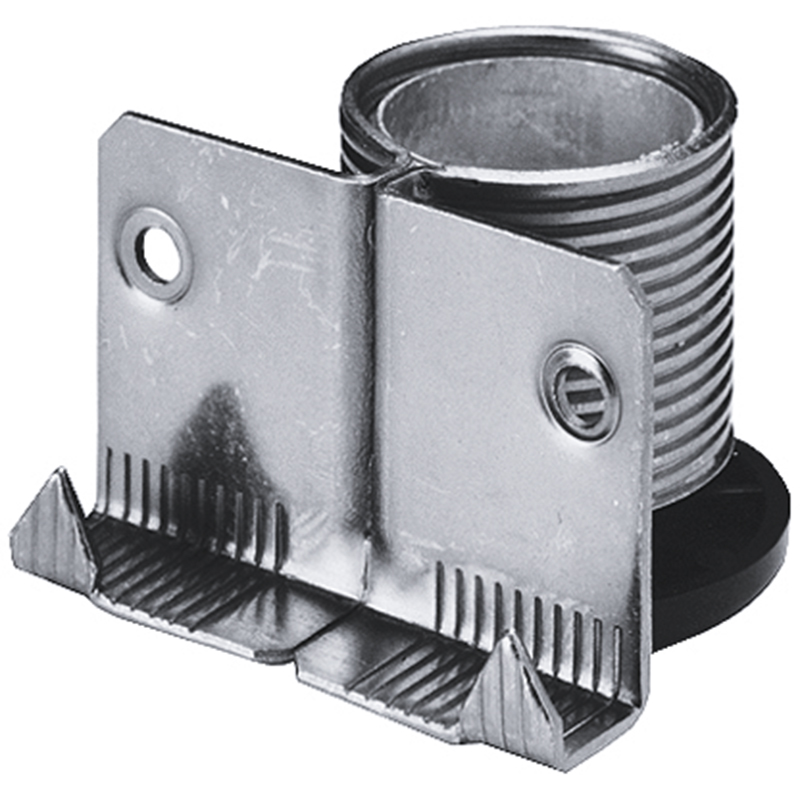 Stahl verzinkt, mit schwarzem Verstellteil, einsetzbar für alle Sockelstärken, Bohrmitte 20 mm ab Seitenwand