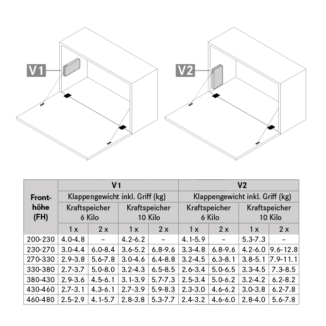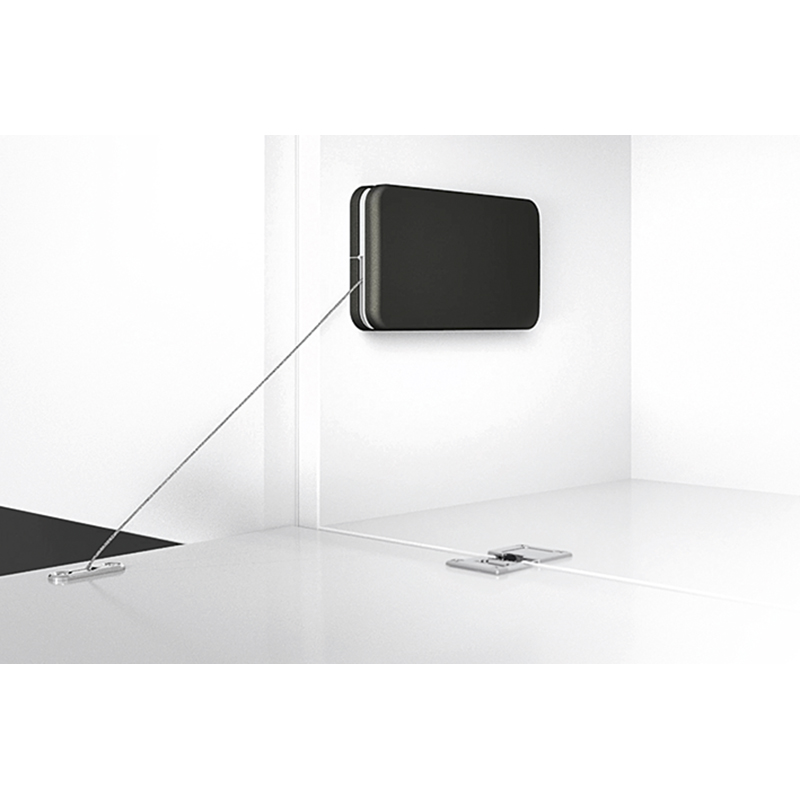 Kunststoffgehäuse, links / rechts verwendbar, gedämpftes Öffnen und sanftes Schliessen, Öffnungswinkel einstellbar über Seillänge, einsetzbar für geringe Korpustiefen ab 110 mm, Federkraftverstellung, Klappenhöhe 200 - 480 mm, einfacher Einbau horizontal oder vertikal, mit Frontbefestigung und Befestigungsschrauben, ohne Abdeckkappen