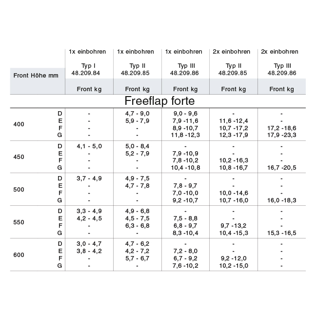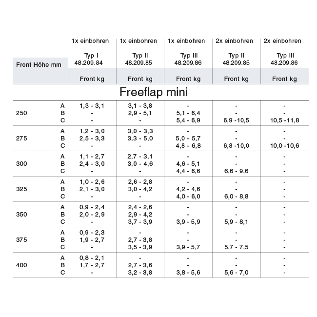 - Klappliftbeschlag FREEflap siehe 48.209.