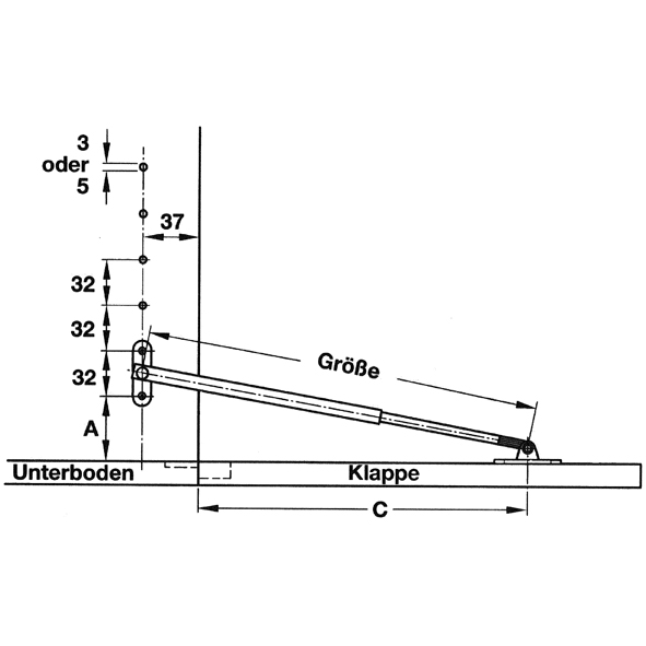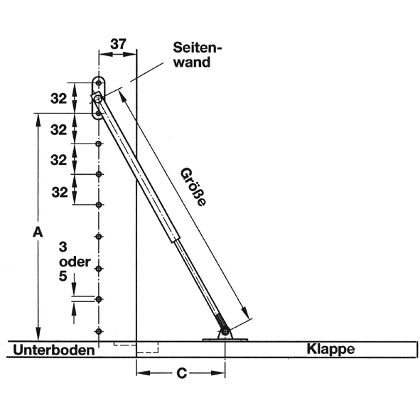 mit regulierbarer Bremswirkung durch Drehen der Kolbenstange,