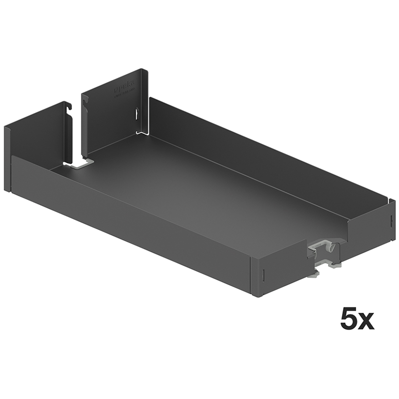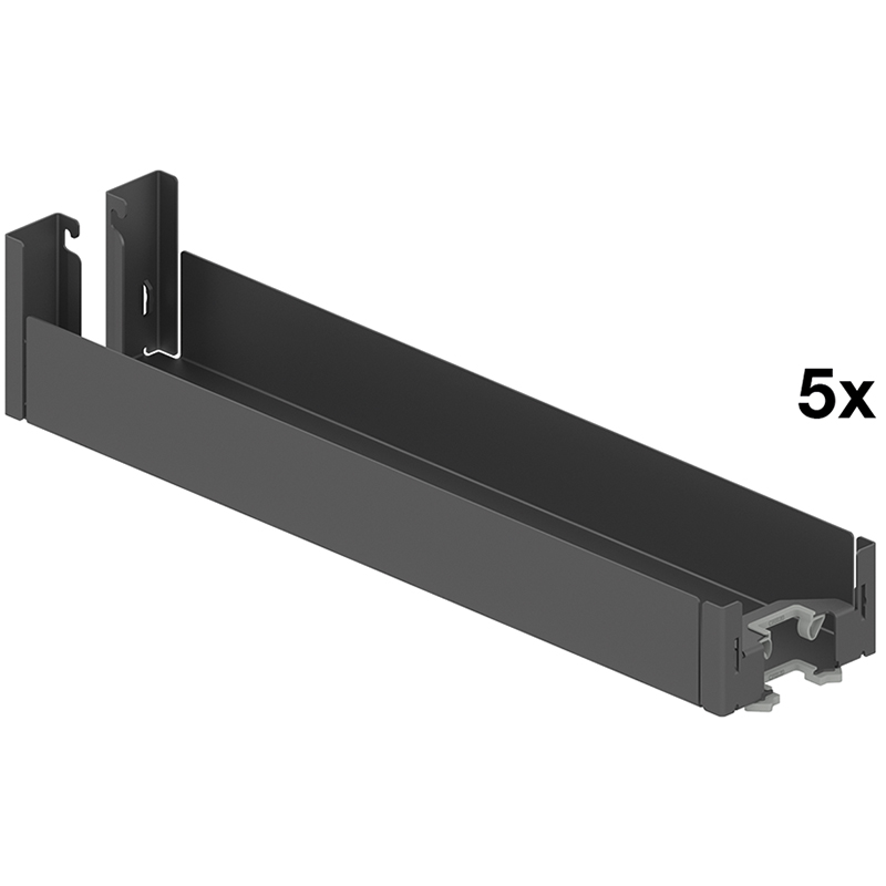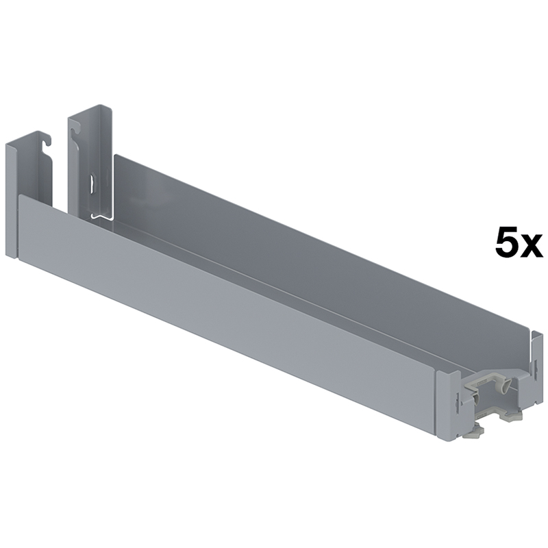 dünnwandige und hochstabile Metalltablare, die mit und ohne Relingeinsätze funktionieren, zum Einhängen am Rohrrahmen Hochschrank Standard