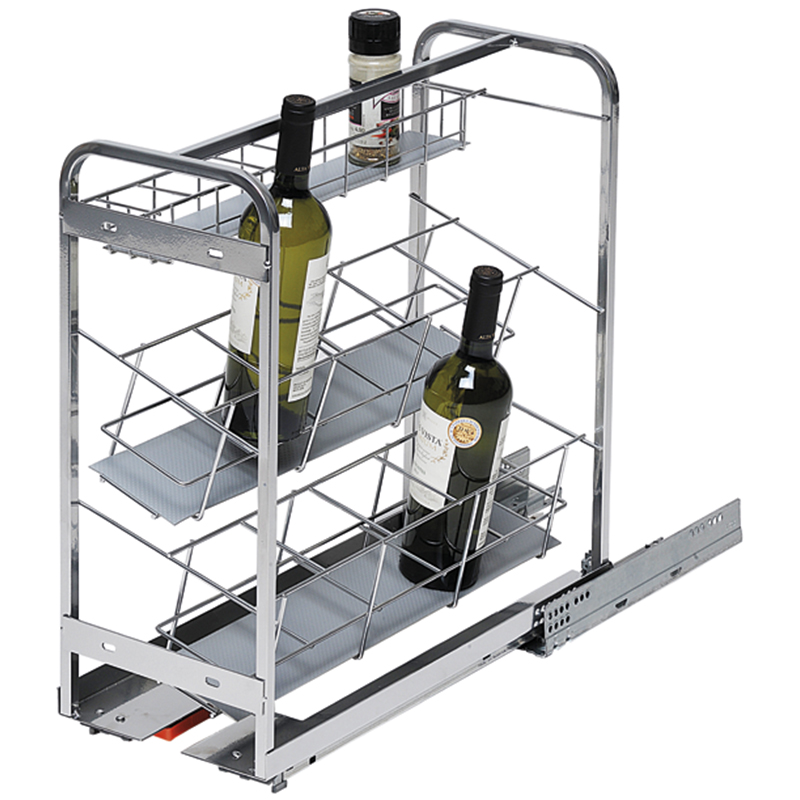 Rohrrahmen weiss RAL 9003 mit Unterflur-Vollauszug Blum Movento, mit Softstopp und Selbsteinzug, Tragkraft 30 Kilo, über Kupplung einstellbar: Seitenverstellung ± 1,5 mm, Tiefenverstellung ± 2 mm, Höhenverstellung + 3 mm, Neigungsverstellung, Frontmontage direkt am Rohrrahmen, für die seitliche oder Bodenmontage, fixe Einteilung für 10 Flaschen, oben mit eingeschweisstem Gewürzkorb, mit Bodeneinlegematte