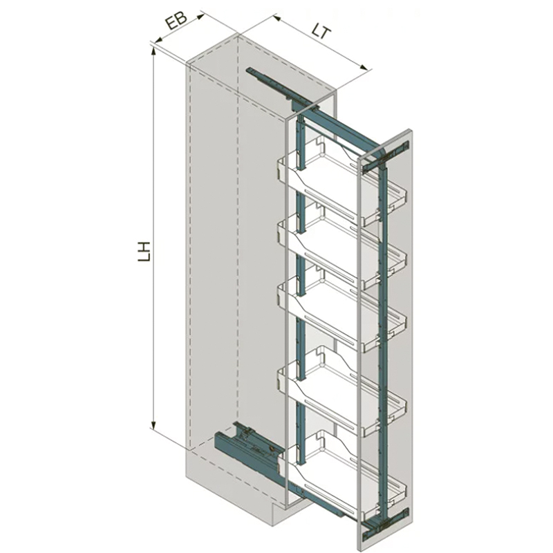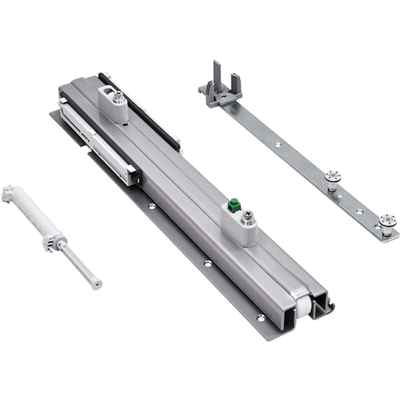 Stahl beschichtet, mit Softopen und Softclose, für gedämpftes Öffnen und Schliessen, mit Schnellmontagesystem ClickFixx für werkzeuglose Frontmontage, komfortable Exzenterverstellmöglichkeit für Höhe, Tiefe und Rotation der Front, mit oberer Führung, Einbautiefe 505 mm