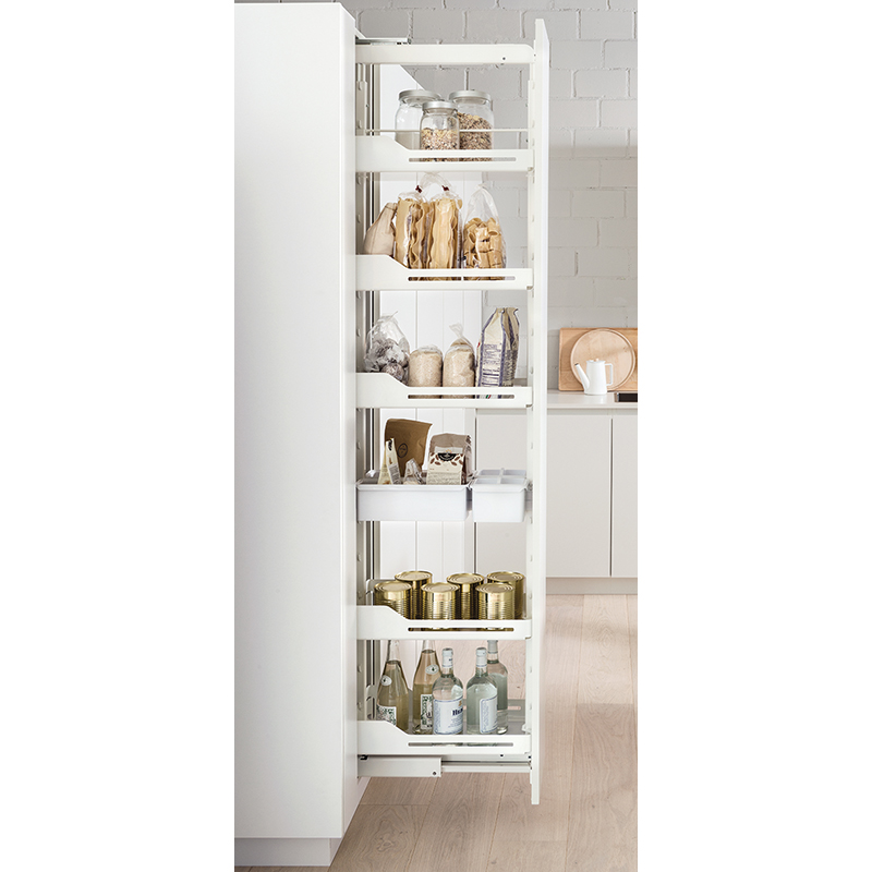 Stahl beschichtet, synchrongesteuert, neuste Rollentechnologie für beste Laufeigenschaften, mit Softopen und Softclose, für gedämpftes Öffnen und Schliessen, mit Schnellmontagesystem ClickFixx für werkzeuglose Frontmontage, komfortable Exzenterverstellmöglichkeit für Höhe, Tiefe und Rotation der Front, mit oberer Führung, Einbautiefe 505 mm Einbauhöhe (lichte Höhe) = Höhe * Auszug plus Höhe * Rohrrahmen