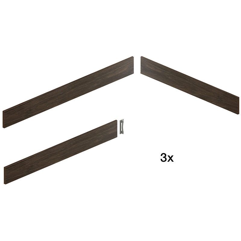 Eiche natur, Eiche gebeizt, Relingeinsatz in den vorgesehenen Schlitz des Liro-Tablars führen, werkzeuglose Montage,