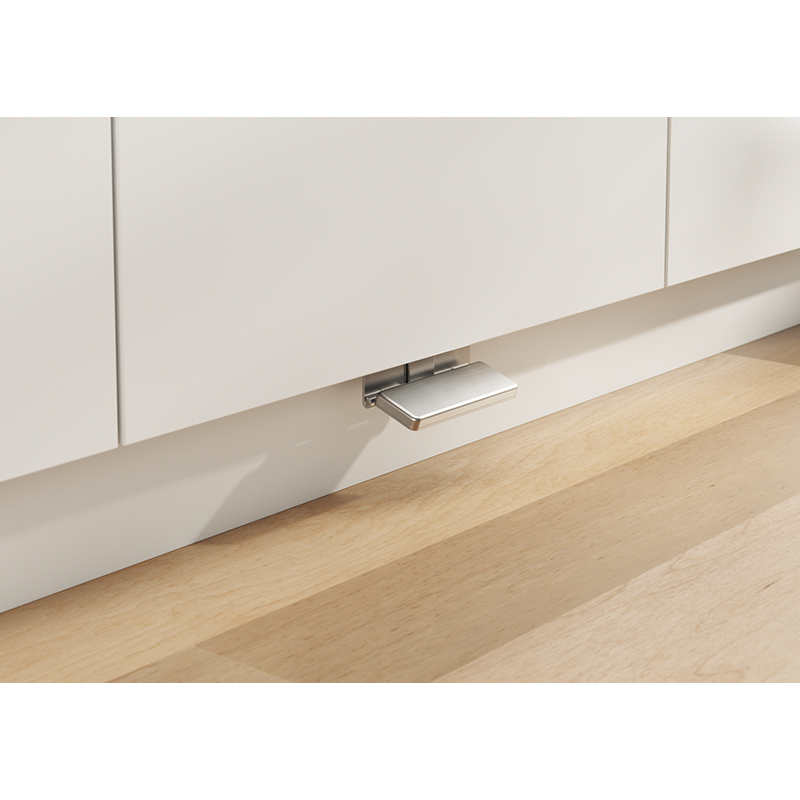 Edelstahl Fuss-Öffner für alle handelsüblichen Auszüge, durch Betätigen des Fusspedals fährt das Abfallsystem mit Schwung aus