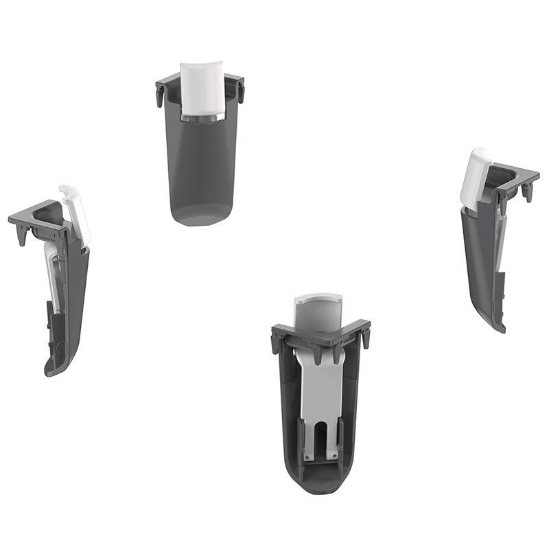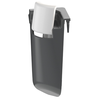 Kunststoff grau, vier Sackspanner halten die Müllsäcke in den Behältern der Müllex X-Line an Ort und Stelle, die flexiblen Spannfinger machen das Einspannen kinderleicht und ermöglichen ein randvolles Befüllen der Gebührensäcke