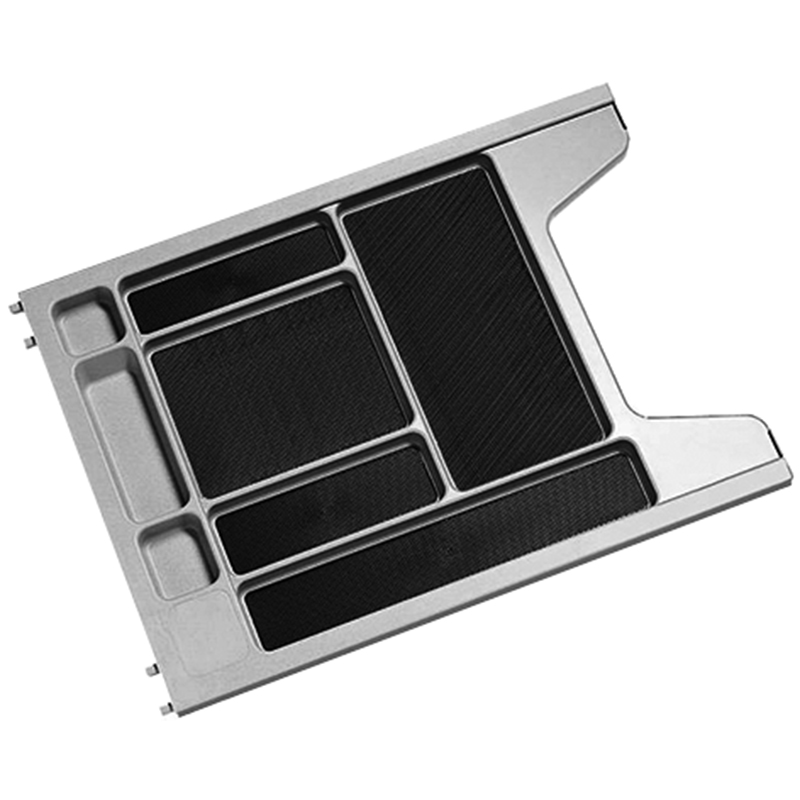 Kunststoffkonstruktion schwarz RAL 9005, Boden mit Antirutschbelag, geräuschhemmend und integriertem Utensilieneinsatz, mit Teilauszug Grass Dynamic mit 1 Dämpfer Soft-close für schwebeleichten Lauf