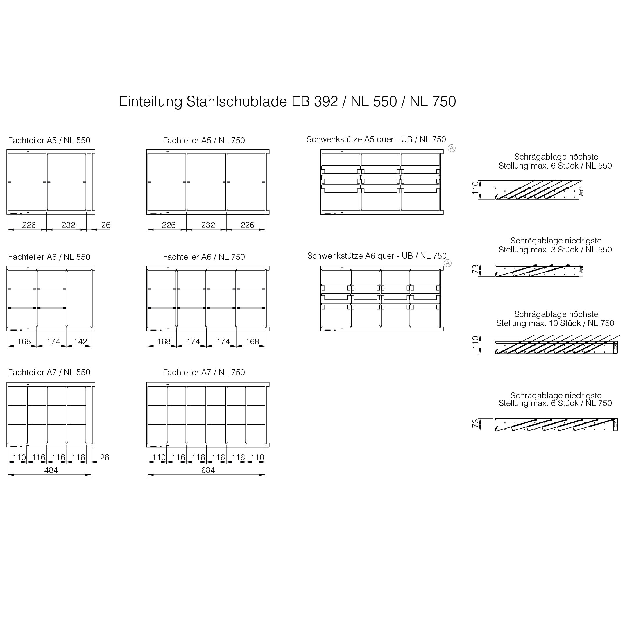 Kunststoff RAL9005 schwarz oder Stahl, für individuelle Einteilung