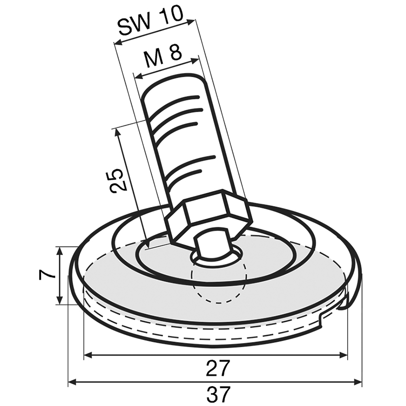Basis-Modul mit schwarzem Hyper-Glider für alle weichen oder robusten, rauen Bodenflächen und Gewindestift M8 x 25 mm, zum Einschrauben, einfache Montage: Basis-Modul einschrauben und entsprechenden Glider einfach aufstecken
