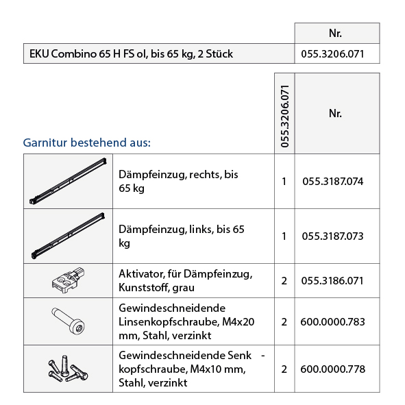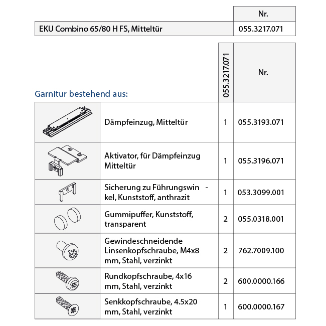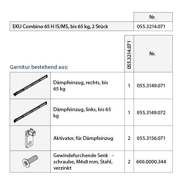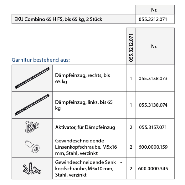 - * Bei Dämpfung in Öffnungs- und Schliessrichtung immer 2 Garnituren bestellen.