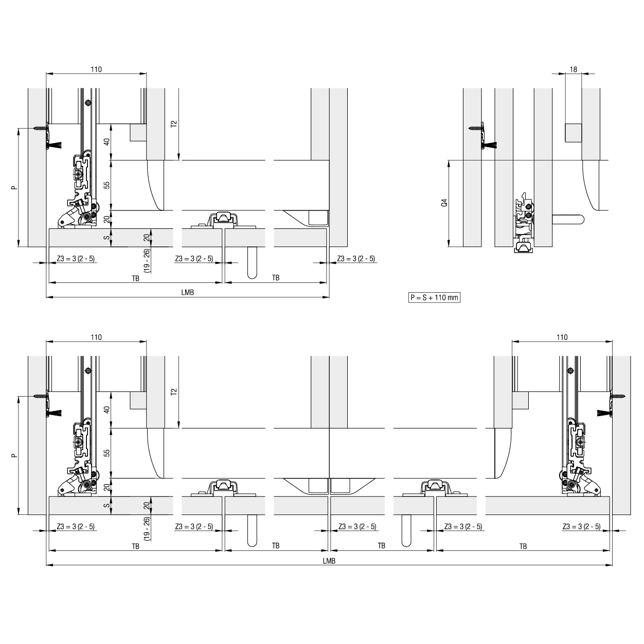 für seitlich einschiebbare Falttüren aus Holz, hohe Bedienungsfreundlichkeit dank gedämpften Scharnieren, angenehmes Schliessen der Türen durch Beseitigung störender Aufschlaggeräusche, mit spielfreier Führung für besonders harmonischen, ruhigen Bewegungsablauf, flächenbündige Schrankfronten können komplett geöffnet werden, es lassen sich je 2 Türen aus Holz falten und seitlich in Möbelkorpusse oder die Mauernischen einschieben, Anwendungsbereich überall dort, wo variable Raumnutzung und freier Zugriff einen aufgeräumten Eindruck hinterlassen sollen, z.B. beim Home-Office im Schlafzimmer, der Küche im Wohnbereich und dem Hauswirtschaftsraum im Badezimmer, raumhohe Konstruktionen ohne Möbelboden erlauben Nischenabdeckungen und begehbare Schränke mit durchlaufendem Fussboden, mit Tiefeneinstellung von 0 / +2 mm, zusätzliche Stützrollen zur Verhinderung der Streifgeräusche an der Schrankinnenseite
