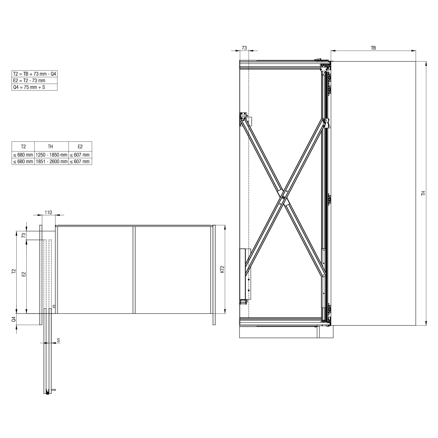 Türhöhe 1250 - 2600 mm,