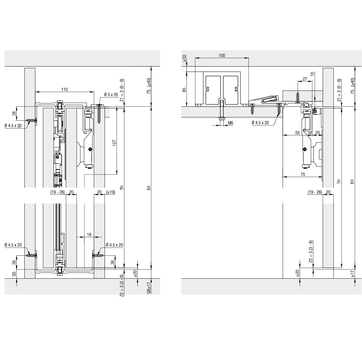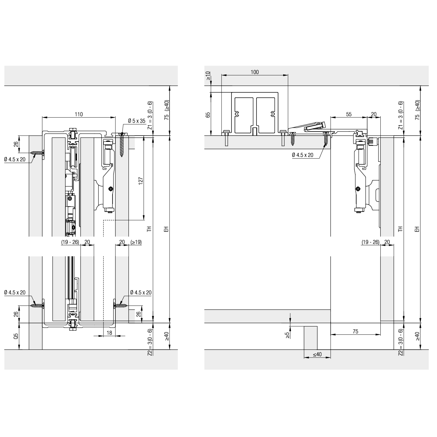 Einschiebetürbeschlag Holz HAWA Folding Concepta 25 mit Schienen