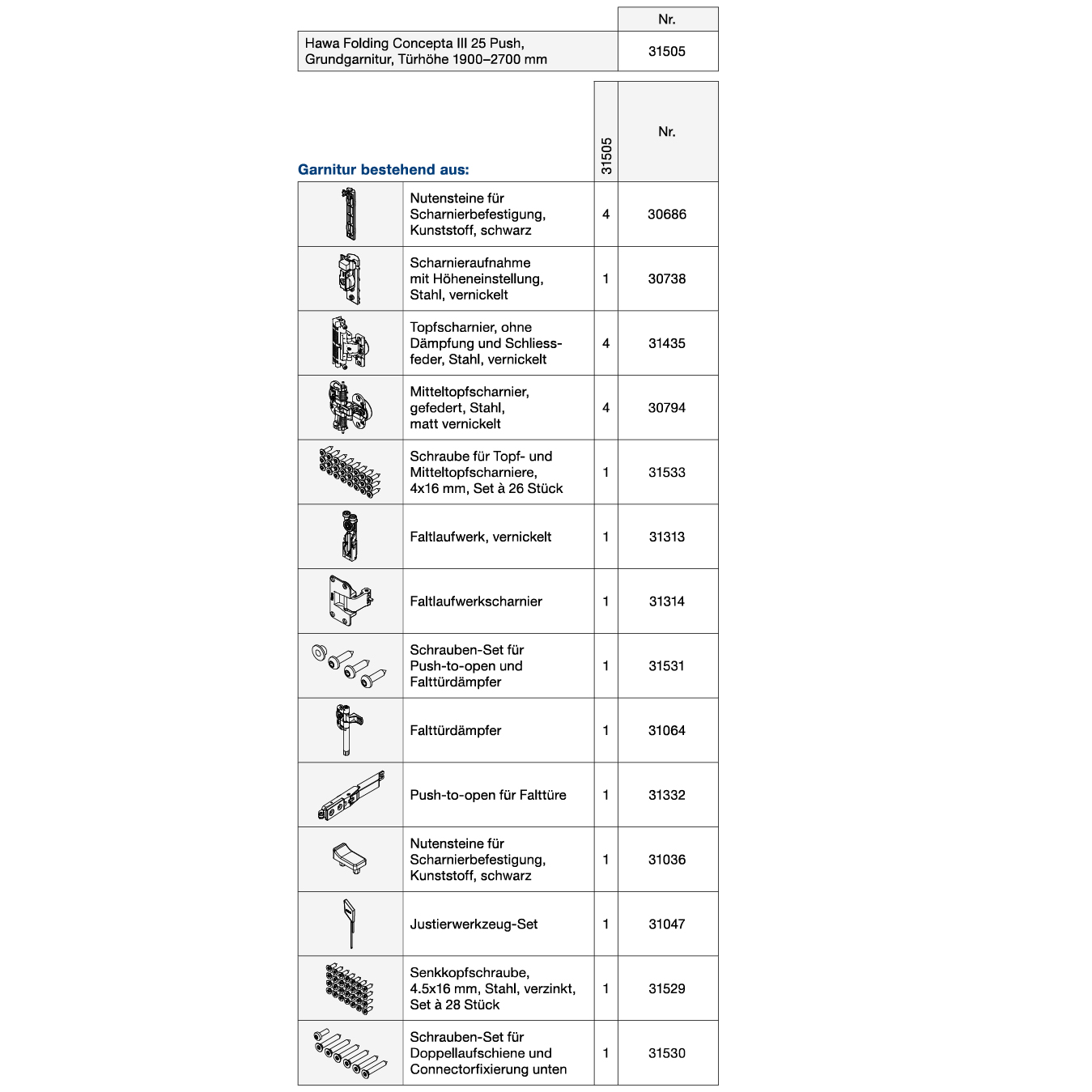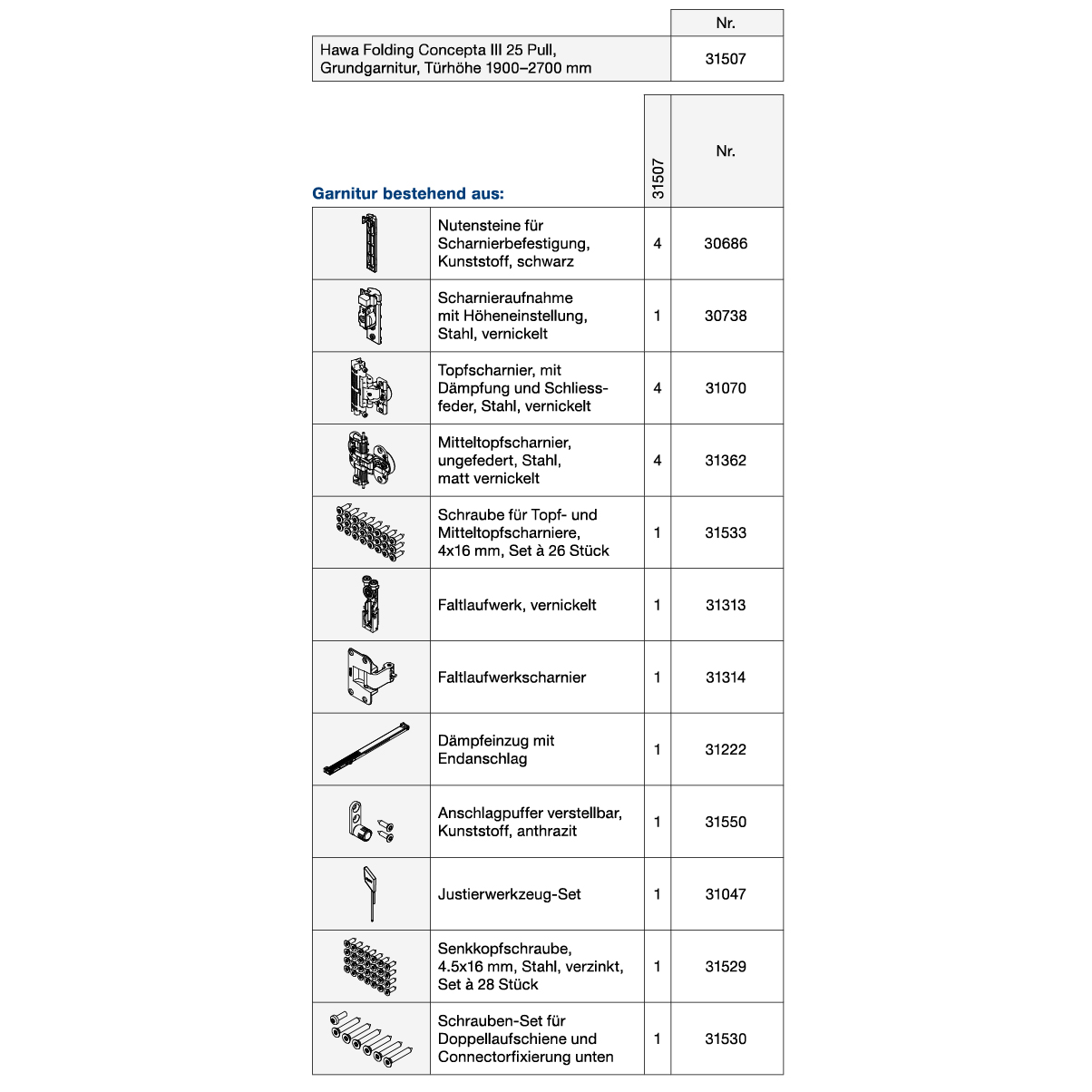 Grundgarnitur HAWA Folding Concepta III