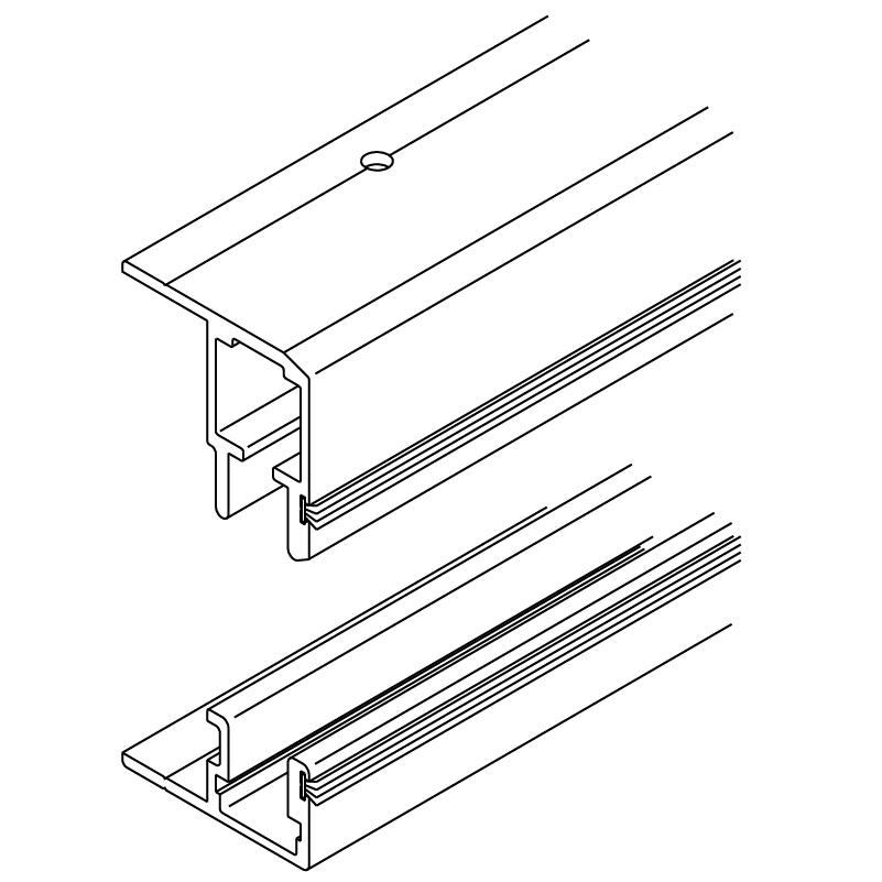 Schienenset bestehend aus: Lauf- und Führungsschiene gebohrt, Aluminium farblos eloxiert und Bürstendichtung