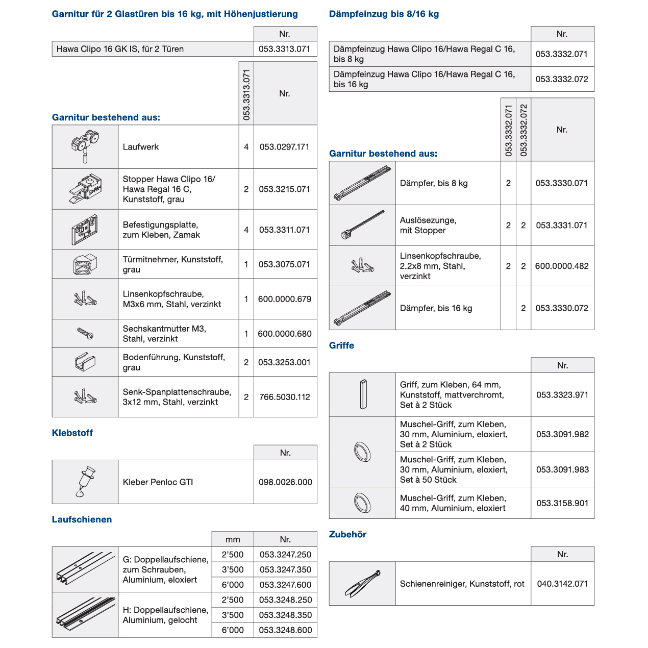 für im Korpus laufende Schrankschiebetüren aus Glas bis 16 Kilo, Glasdicke 6 - 6,35 mm, Türgrösse (Breite x Höhe) max. 1000 x 1400 mm, ohne Laufschienen, ohne Zubehör