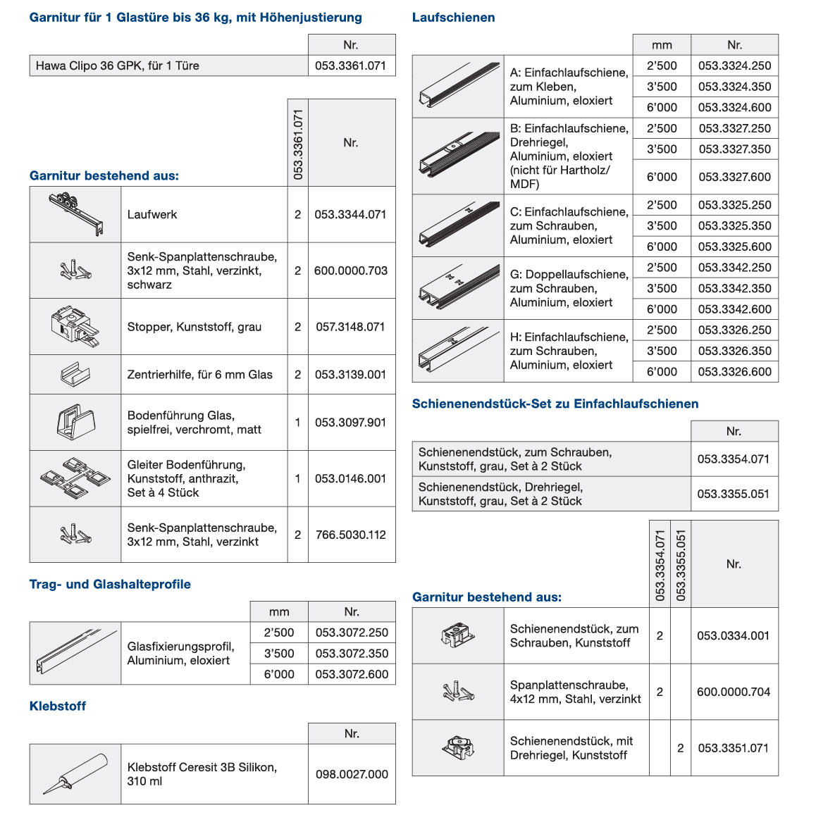 Schiebetürbeschlag Glas HAWA Clipo 36 GPK Inslide