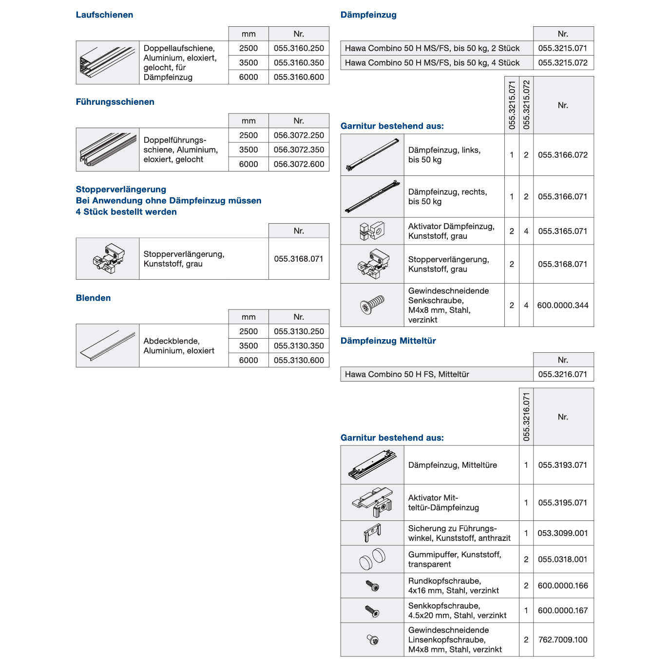 Schiebetürbeschlag HAWA Combino 50 H Forslide, für Dämpfeinzug