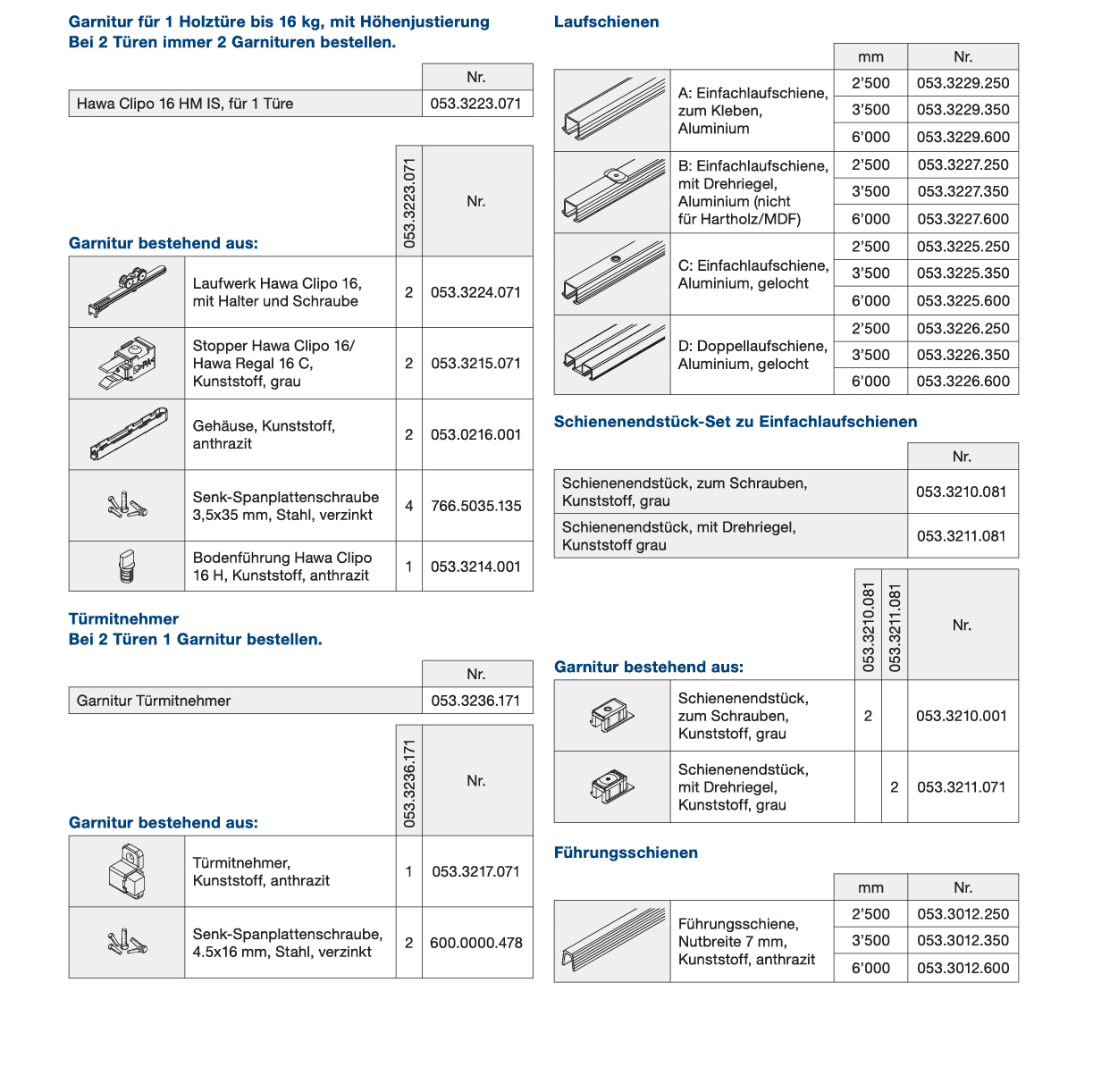 Schiebetürbeschlag Holz HAWA Clipo 16 HM Inslide