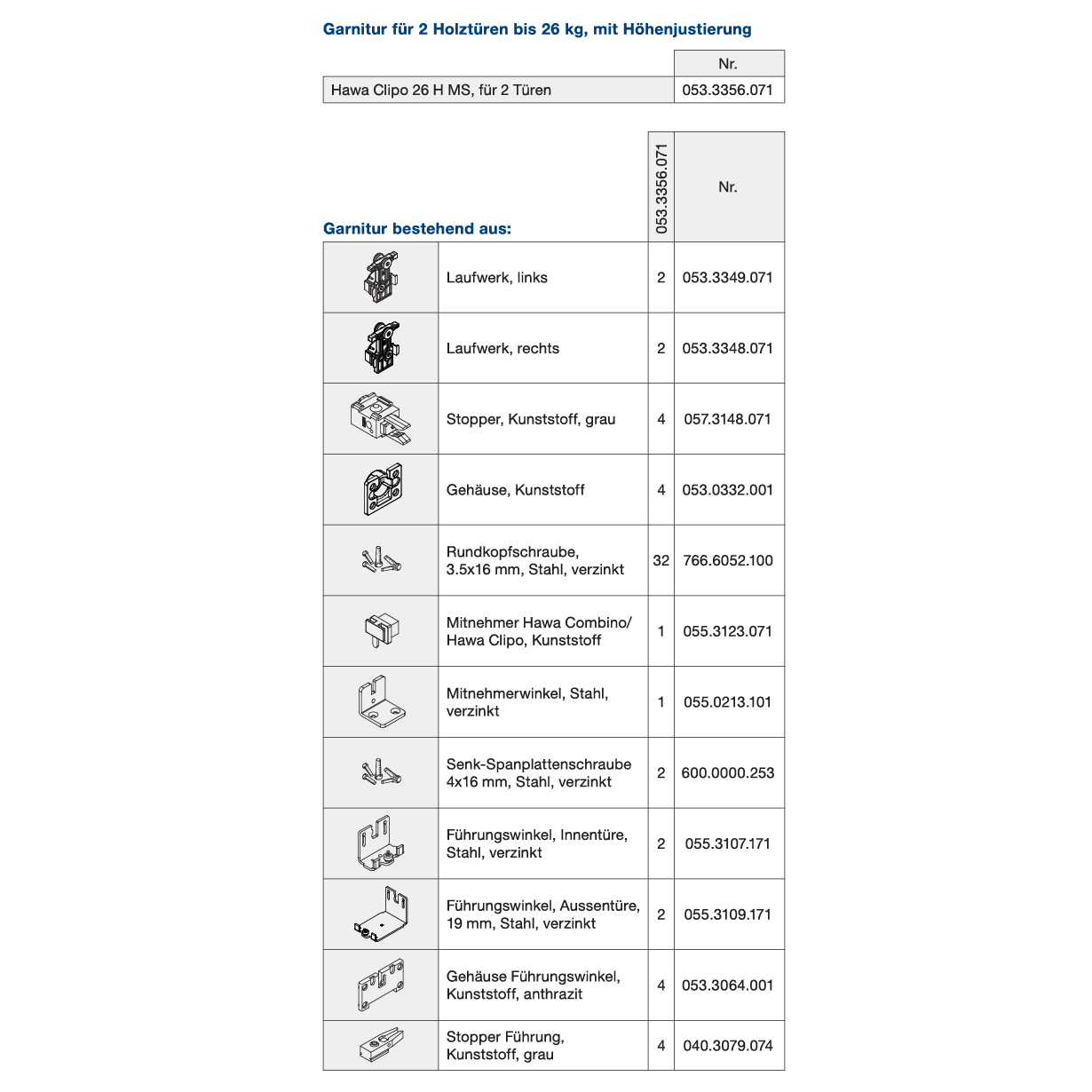 Schiebetürbeschlag Holz HAWA Clipo 26 H Mixslide