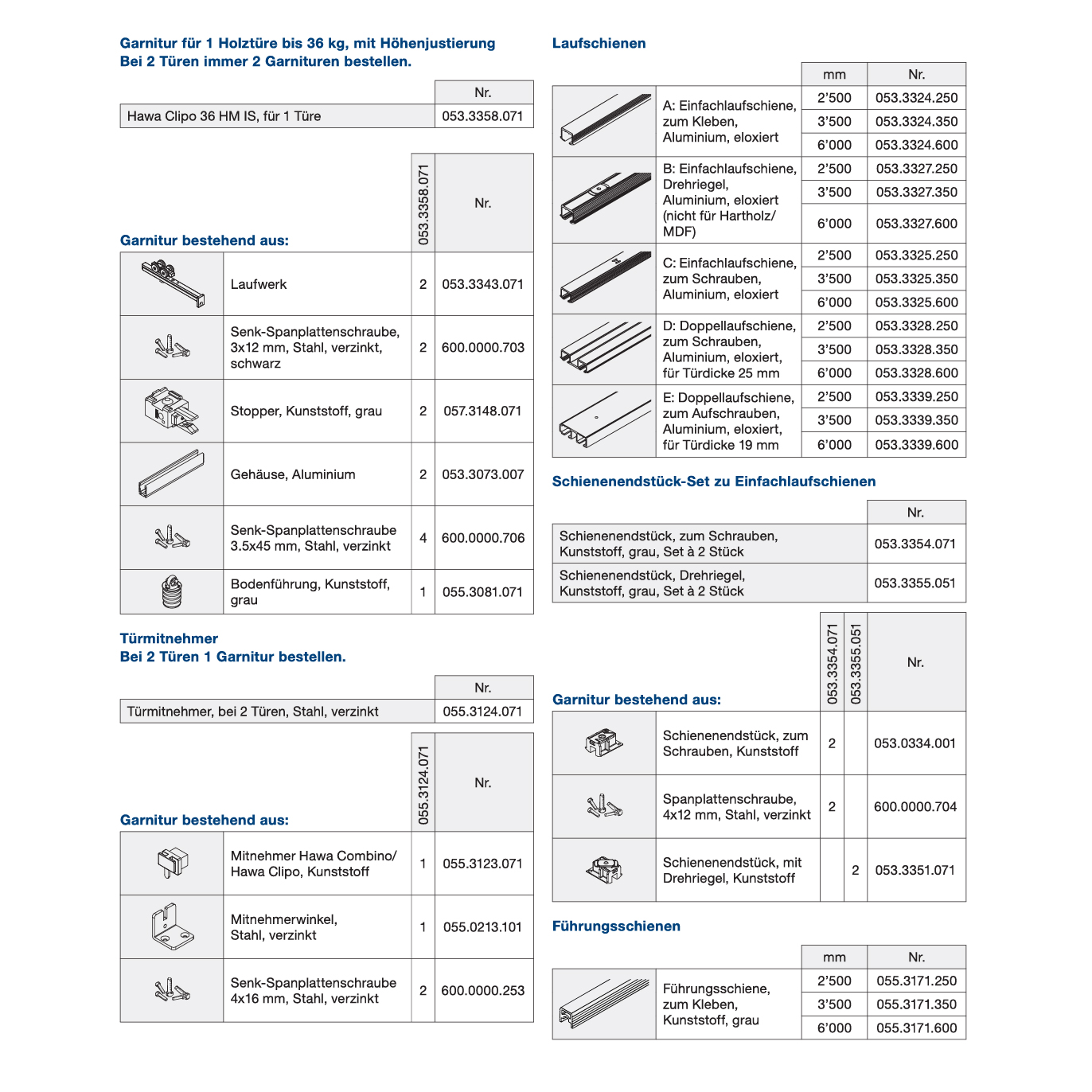 Schiebetürbeschlag Holz HAWA Clipo 36 HM Inslide