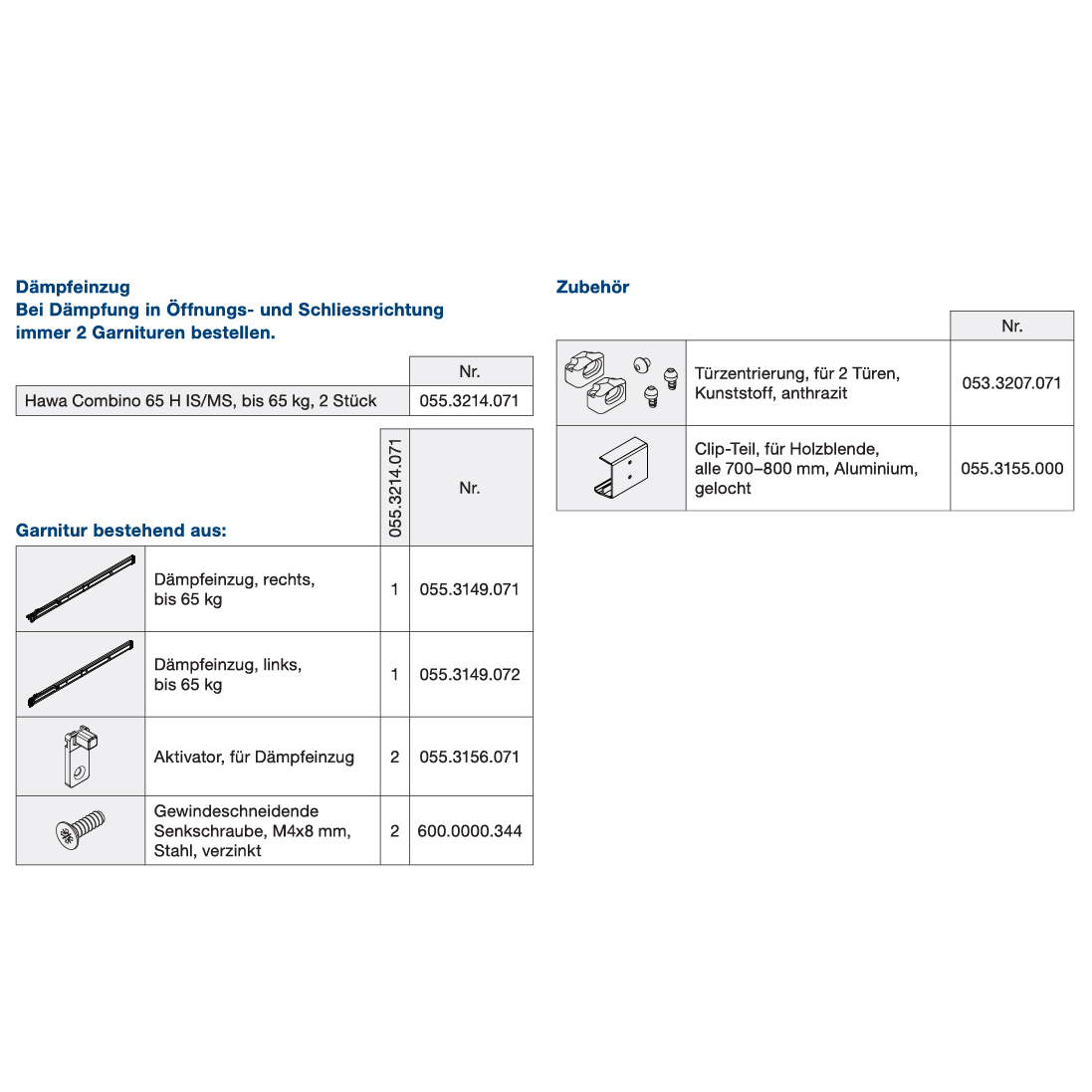 Schiebetürbeschlag Holz HAWA Combino 65 H Inslide, für Dämpfeinzug